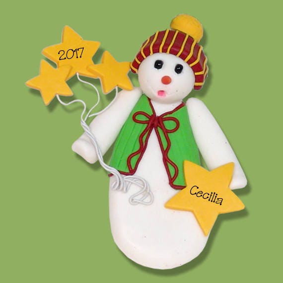 Snowman with Stars Handmade Polymer Clay Personalized Christmas Ornament - SALE!