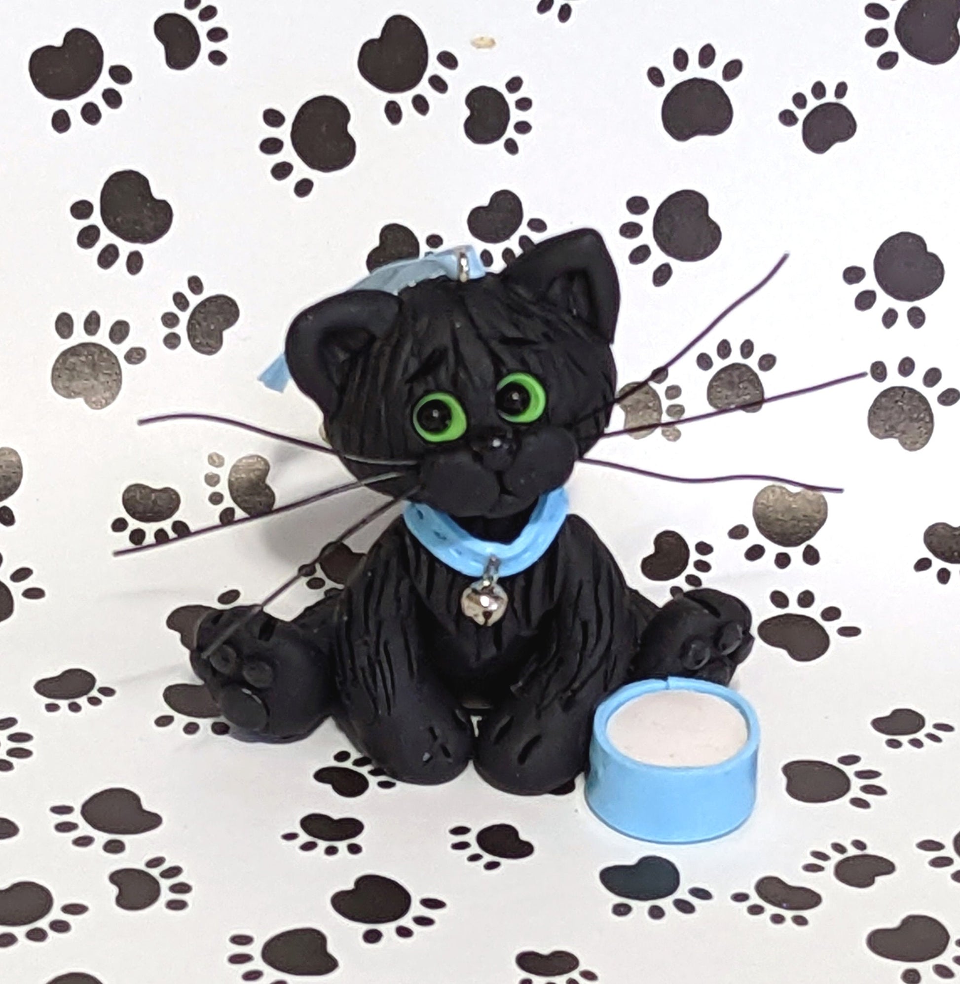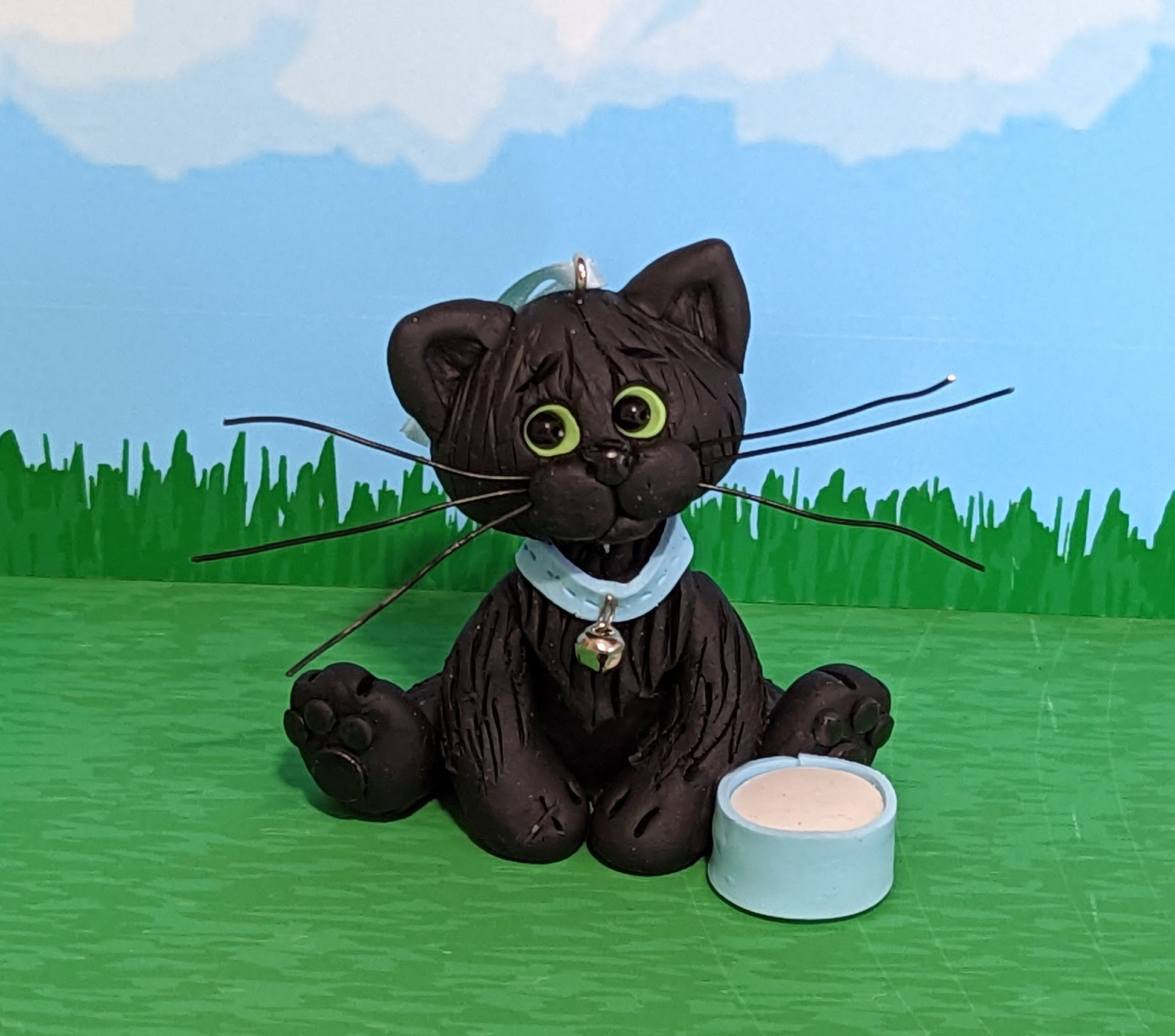 Solid Black KITTY CAT HANDMADE Polymer Clay Personalized Christmas Ornament