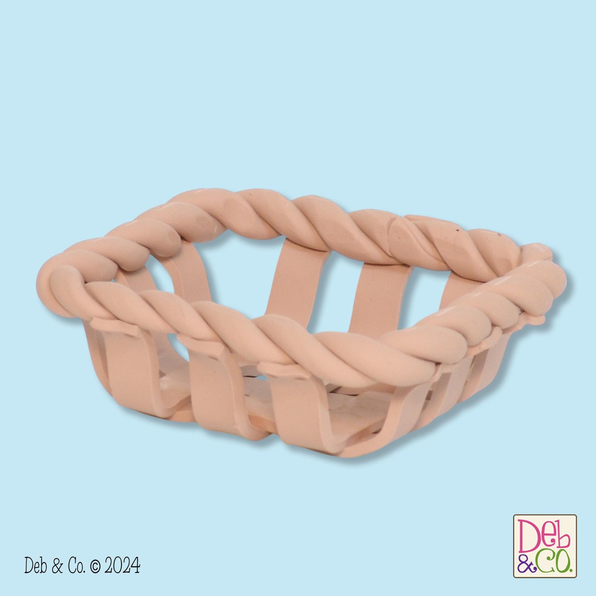 This is a darling little handmade polymer clay bread basket. It is handmade by me. It comes with the gingham fabric insert but does NOT include the cookies. It is ideal to include in a tiered tray or gingerbread display.