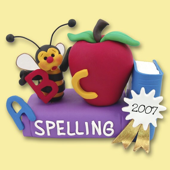 Teacher's Gift, Personalized School Ornament, HANDMADE POLYMER CLAY, Personalized Christmas Ornament, Spelling Bee Figurine,Teacher Ornament