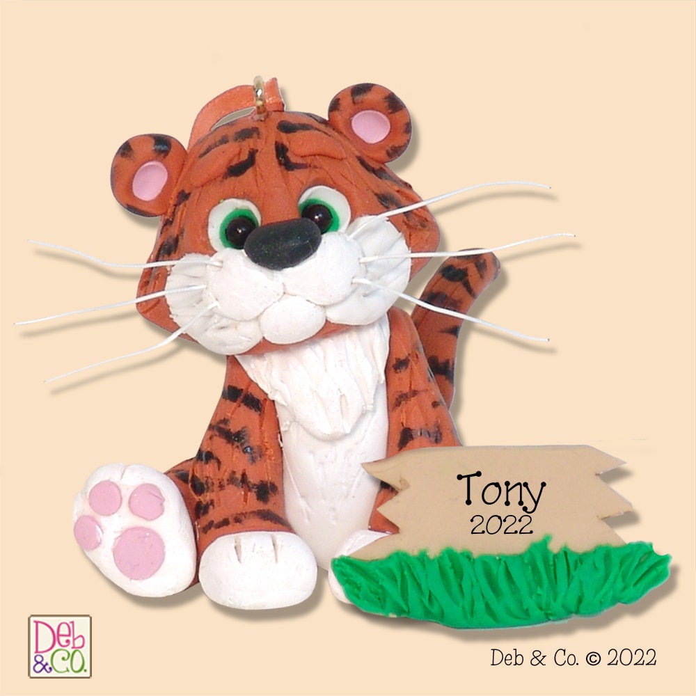 Tiger HANDMADE Polymer Clay Personalized Christmas Ornament w/Personalization Plaque