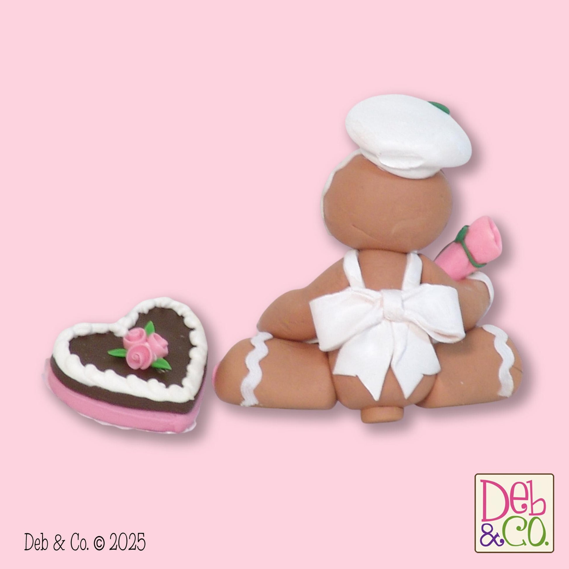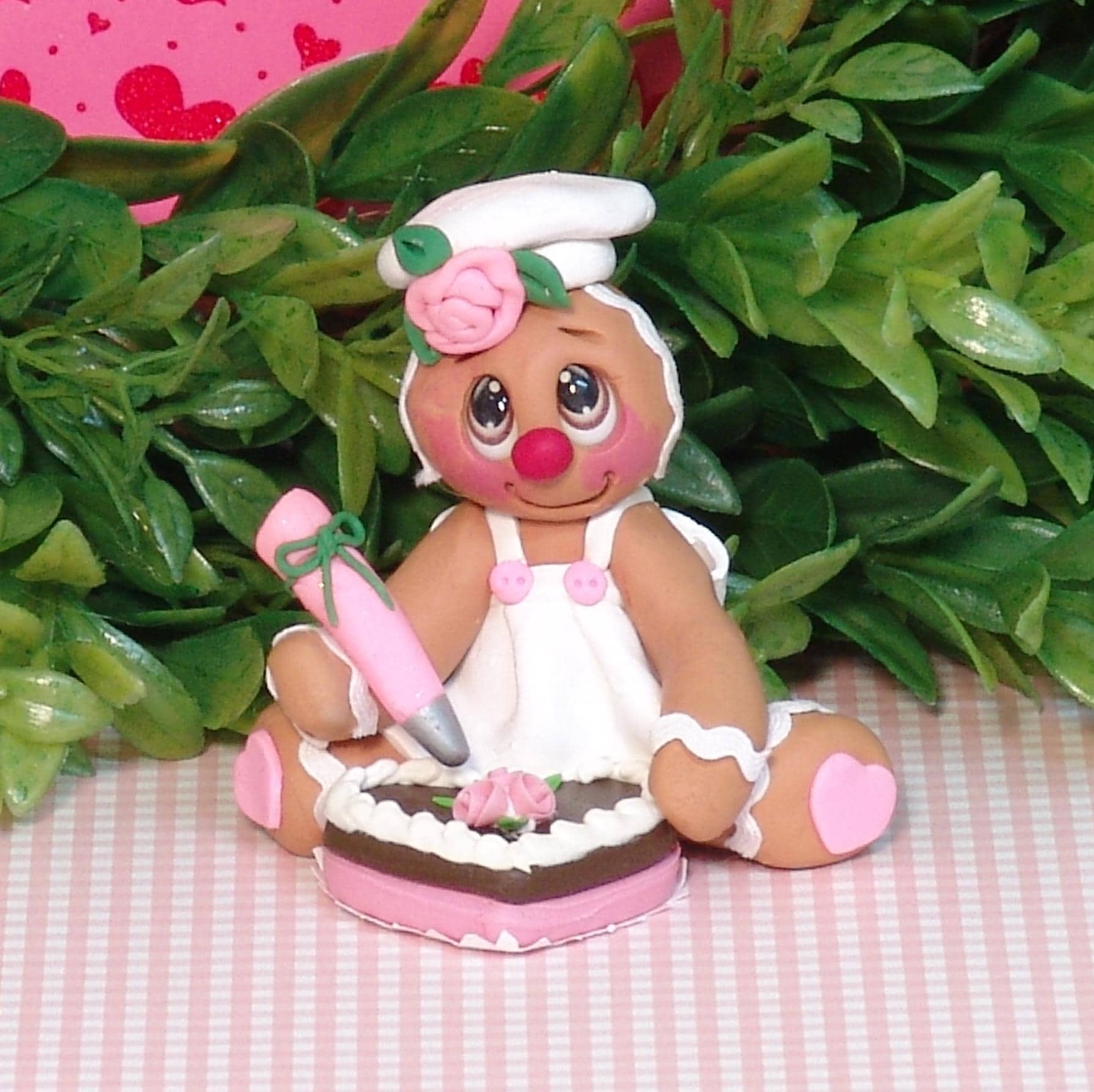 Valentine Gingy Decorating a Heart Cake Handmade Polymer Clay Tiered Tray Valentine Decor
